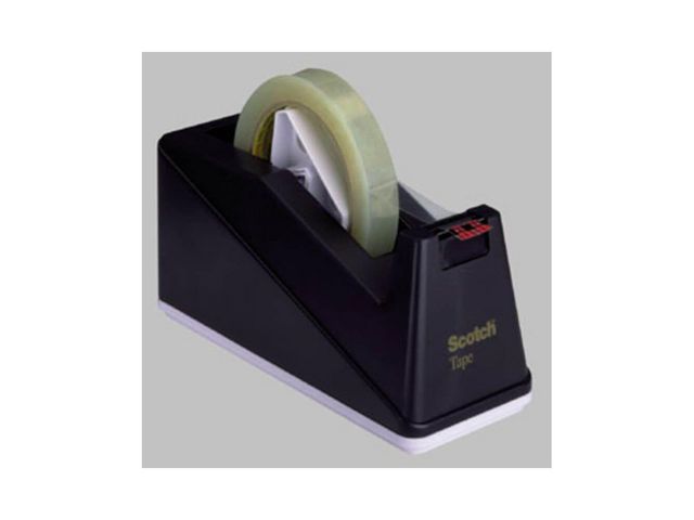 Den passar med många olika tejpsorter av olika storlekar, inklusive kärnstorlekar med upp till 75 mm bredd, tejpbredder på upp till 25 mm och tejplängder på upp till 66 meter. Denna Scotch®-tejphållare har inbyggda vikter samt ett gummigrepp på basen som ger utmärkt stabilitet. Med den stadiga C10-hållaren kan du riva av tejp med en hand medan du håller i ett paket med den andra handen. Skrivbordstejphållaren för tung användning har en vass kvalitetskniv så att tejpen kan beskäras snabbt och smidigt. Den klassiska svarta finishen gör den till ett attraktivt objekt att ha på skrivbordet på jobbet eller på ett bord hemma.