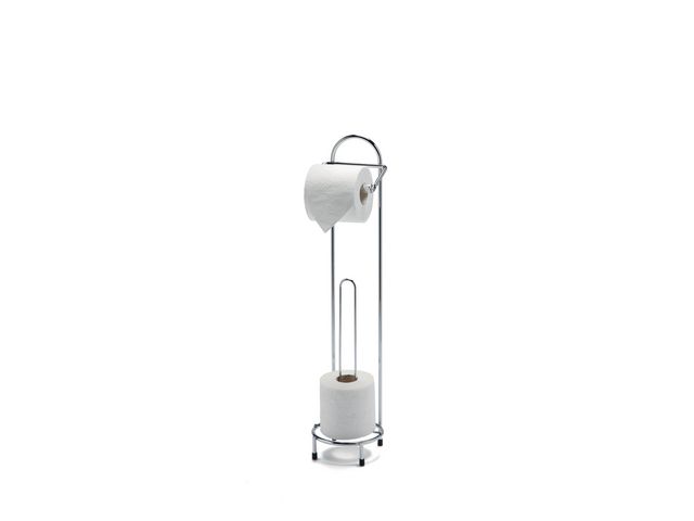Enkel och stilig hållare för toalettpappret med plats för extra rullar.