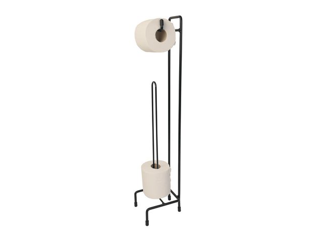 Enkel och stilig hållare för toalettpappret med plats för extra rullar.