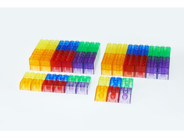 Genomskinliga plastbyggklossar, perfekta för att förbättra finmotoriken genom fantasifull lek. Uppmuntrar och stimulerear fysisk utveckling.