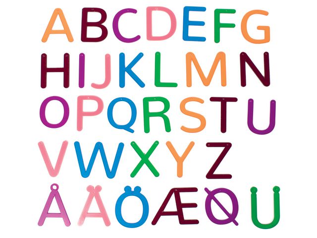 Transparenta färgglada bokstäver från A till Ö (ink nordiska bokstäver).