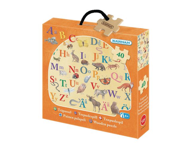 Pusslet består av 40 bitar i trä och har härliga djurmotiv till bokstäverna.