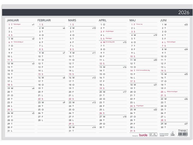 Ett halvår per sida. Med plats för anteckningar.