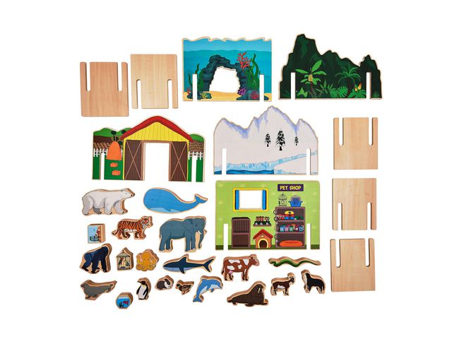 Barn kommer att njuta i timmar av fantasifull lek med dessa vilda djur i trä deras miljöer.