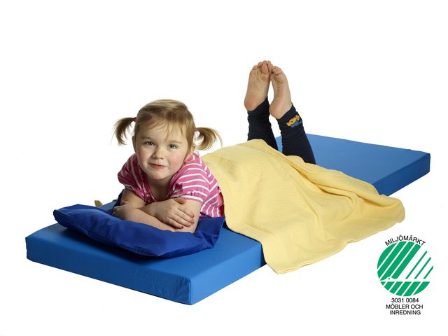 Blått fodral helt utan flamskyddsmedel eller PVC, tillverkad av ett 2-skiktsmaterial bestående av 51% polyesterväv och 49% polyurethan och med en kallskumskärna. Klädseln är maskintvättbar i 95 grader.
