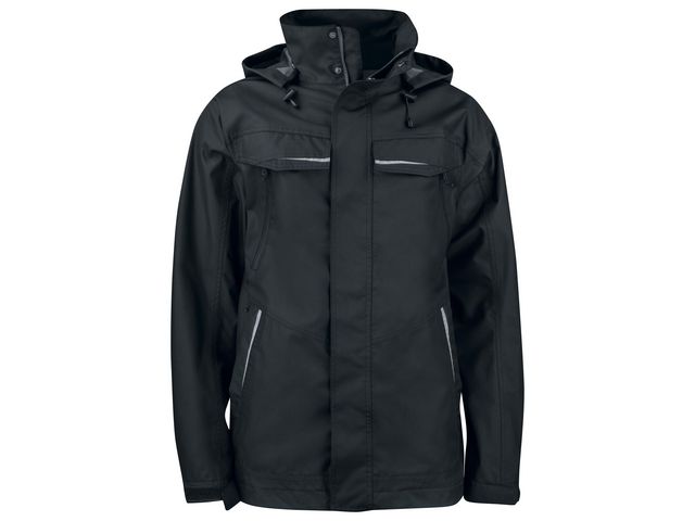 Vinterjacka med tvåvägsdragkedja framtill med slag på yttersidan för att förhindra vinddrag samt genomträngning av väta, försluts med tryckknappar. Dubbla bröstfickor, två med lock och kardborreförslutning samt två med vattentäta dragkedjor. Sid¿ckor med dragkedja. En D-ring på vänster bröst. Tre rymliga inner¿ckor, varav två med dragkedja. Reflexdetalj på fickorna framtill samt i nederkant baktill. Reglerbar, avtagbar huva med tryckknappar. Reglerbar i midja med snodd, reglerbara ärmslut med kardborre. Förlängd i rygg. Innertyget är öppningsbart för att underlätta förädling.