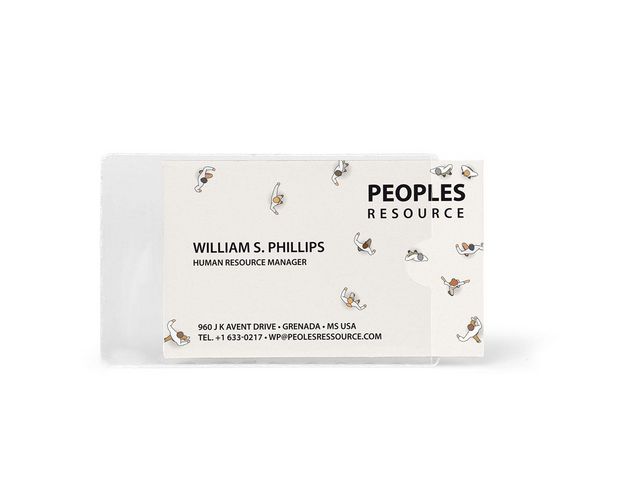 Ficka av klar PP-plast för visitkort i standardformat – kan fästas på t.ex. erbjudanden, omslag, kalendrar och pärmar.